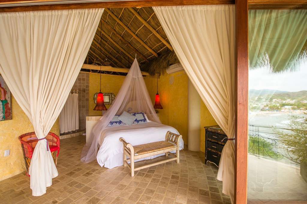 12 foot tall antique Moroccan wooden doors invite you into an oversized entry that lead into its huge outdoor living area overlooking the majestic Sayulita coastline. Villa Besito Dulce is a highly sought after villa with its stunning and romantic design, authentic palapa roof, outdoor kitchen, and spacious bathrooms. You’ll be thoroughly delighted by the exquisite custom antique wood wall design, which incorporates an old ceiling uncovered on a trip to India.